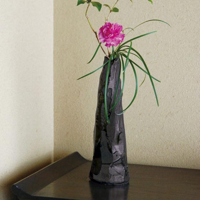 信楽焼きの「黒釉面取花入(小)」 伝統工芸品 しがらき 信楽焼 陶器 陶製 和風 和室 花瓶 花台 華 いけばな 活花 つぼ 壷 壺 ツボ 花入れ 茶室 茶道 和テイスト 華道 花生 フラワーベース アンティーク おしゃれ リフル
