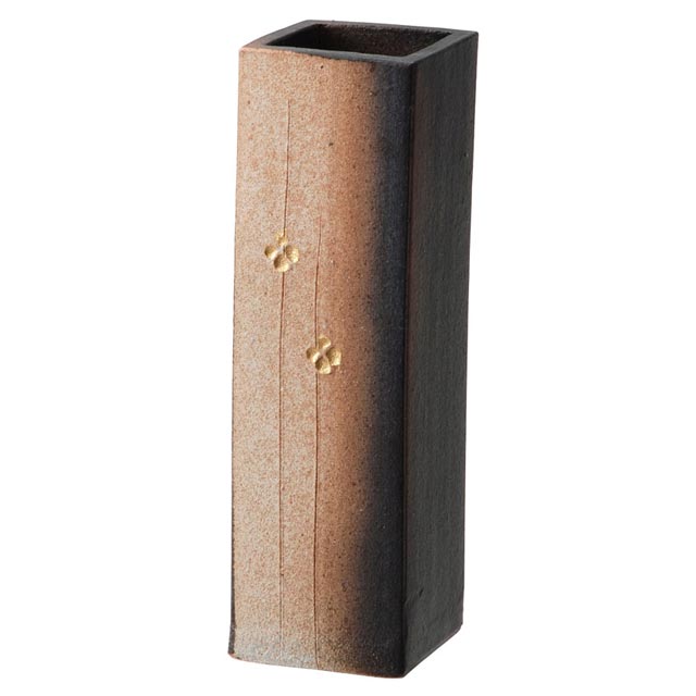信楽焼きの「金彩小花角花入」 伝統工芸品 しがらき 信楽焼 陶器 陶製 和風 和室 花瓶 花台 華 いけばな 活花 つぼ 壷 壺 ツボ 花入れ 茶室 茶道 和テイスト 華道 花生 フラワーベース アンティーク おしゃれ リフル