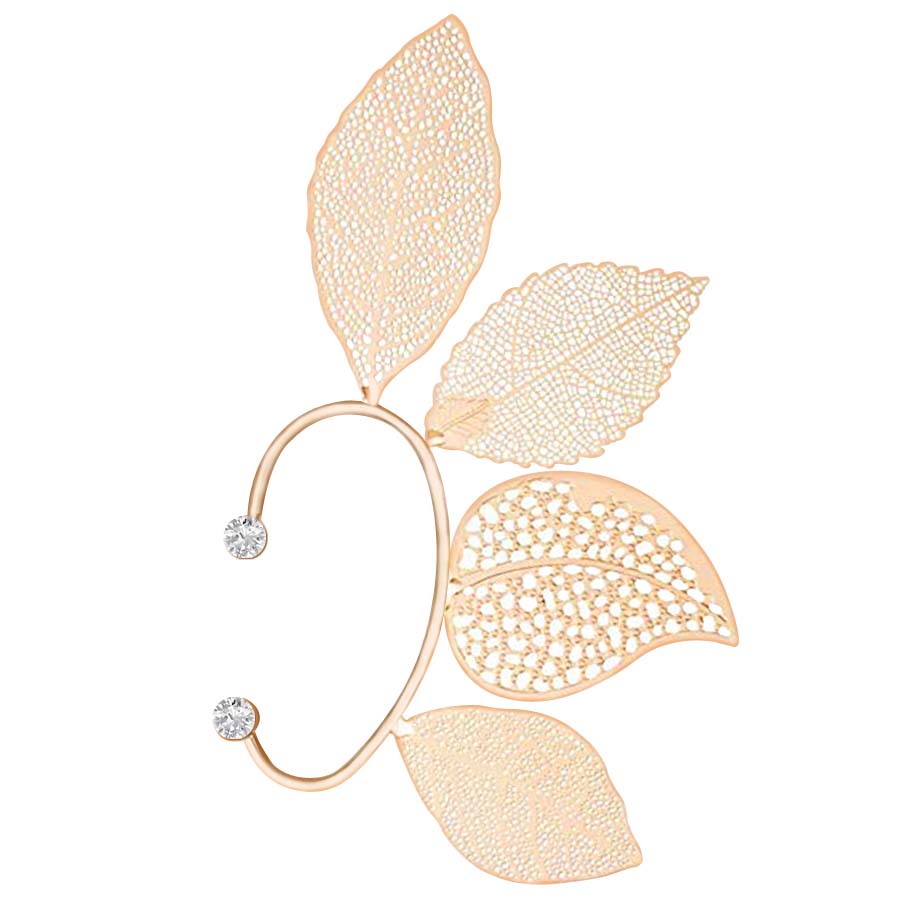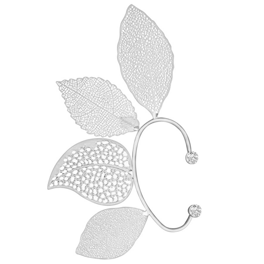 クリスタルをセットしたイヤーフックに大きさやデザインの異なる葉っぱを4枚セットしたおしゃれなノンホールピアス。