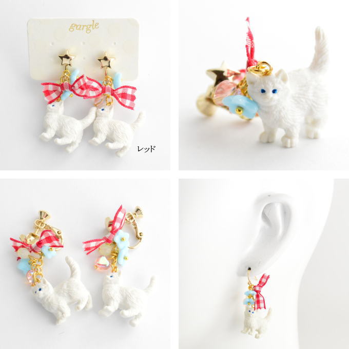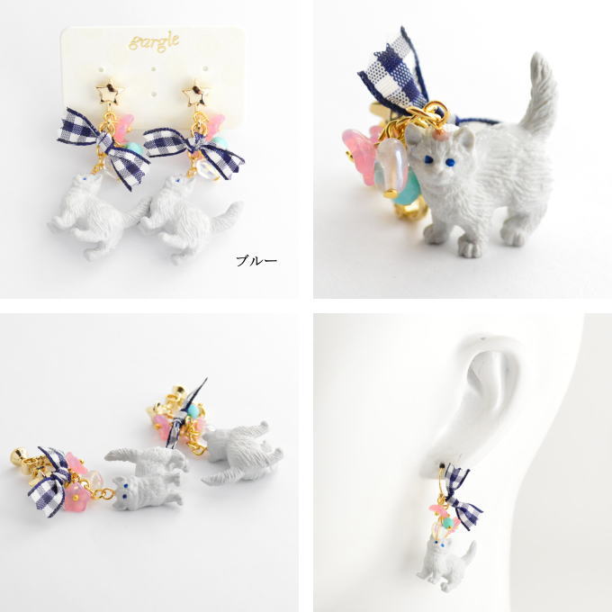 DETAIL ◆サイズ 猫モチーフの横径 約2cm 全長 4.5cm(イヤリングパーツ部分から計測) 素材 ネコは樹脂製 真鍮・メッキ イヤリングパーツ:メッキ ご注意下さい 店頭でも販売しておりますので、タイミングによってはご注文をキャンセルさせていただく場合がございます。