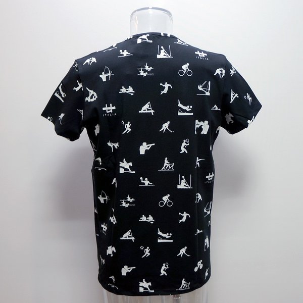 アンジェロジャパン正規取扱品 定価 ¥19000+税 品番 01-2514-60-05 素材 綿90 ポリウレタン10 カラー ブラック XLサイズ 肩幅 41 身幅 49 (脇下10センチの所) 袖丈 18 着丈 71 XXXLサイズ 肩幅 47 身幅 53 (脇下10センチの所) 袖丈 21 着丈 76 製造国 イタリアオリンピック柄が総柄で入った 2020に持ってこいのインパクトのある Tシャツです!!
